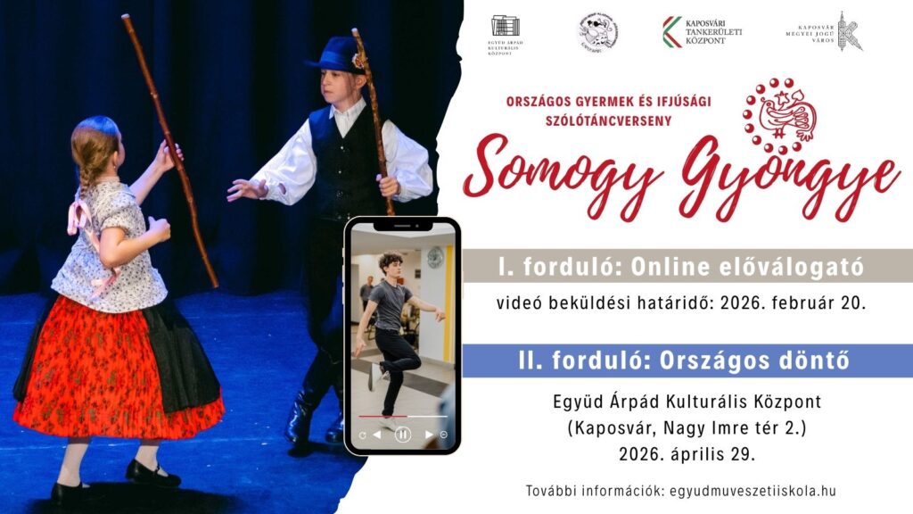 Tisztelt Érdeklődők!Várjuk nevezésüket az „I. SOMOGY GYÖNGYE” Országos Szólótáncversenyre. Lehetőséget kívánunk nyújtani 6-19 éves korú…